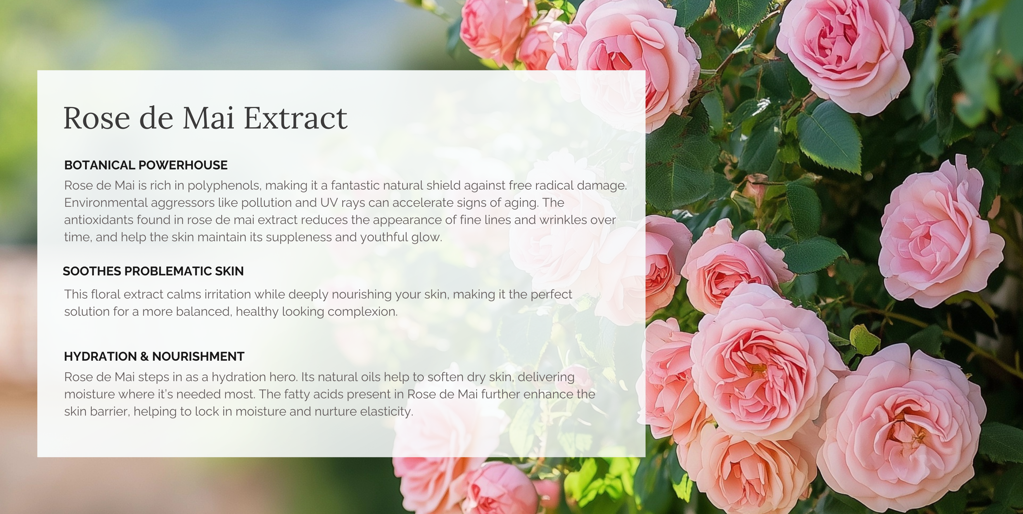 I love this rose moisturzer. I have mature, dry skin and this is the one cream that corrects that. I use it morning and night and it makes a huge difference. My skin is so soft and makeup applies better. And the clean ingredients are a plus.