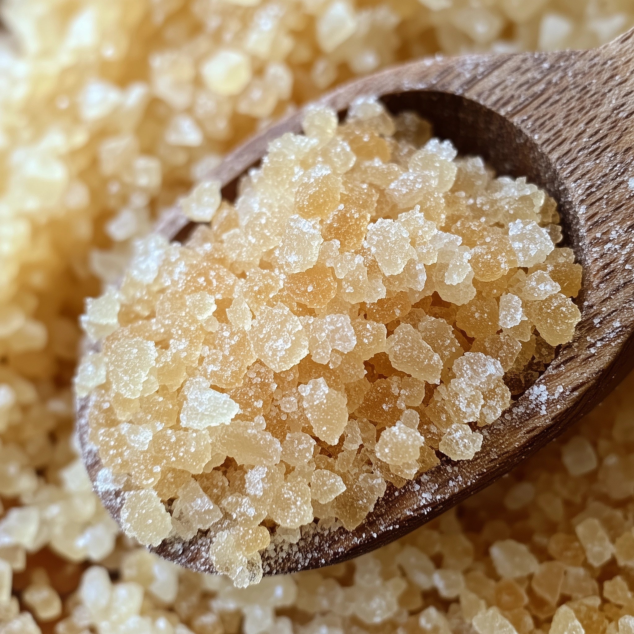 Turbinado sugar is a natural exfoliant that gently removes dead skin cells, leaving the skin smooth and rejuvenated. Its coarse texture promotes better circulation when massaged onto the skin, while its natural nutrients, including glycolic acid, help maintain hydration and support a healthy glow.